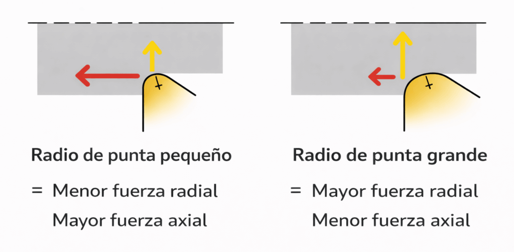 El radio de punta no es un dato secundario, sino una variable crítica dentro del proceso de mecanizado.
