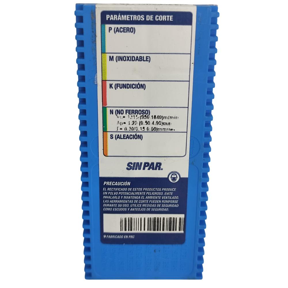 | Descripcion de rompevirutas | Al para mecanizado de aleaciones de aluminio. Vértice filoso gracias a su gran ángulo de incidencia. |