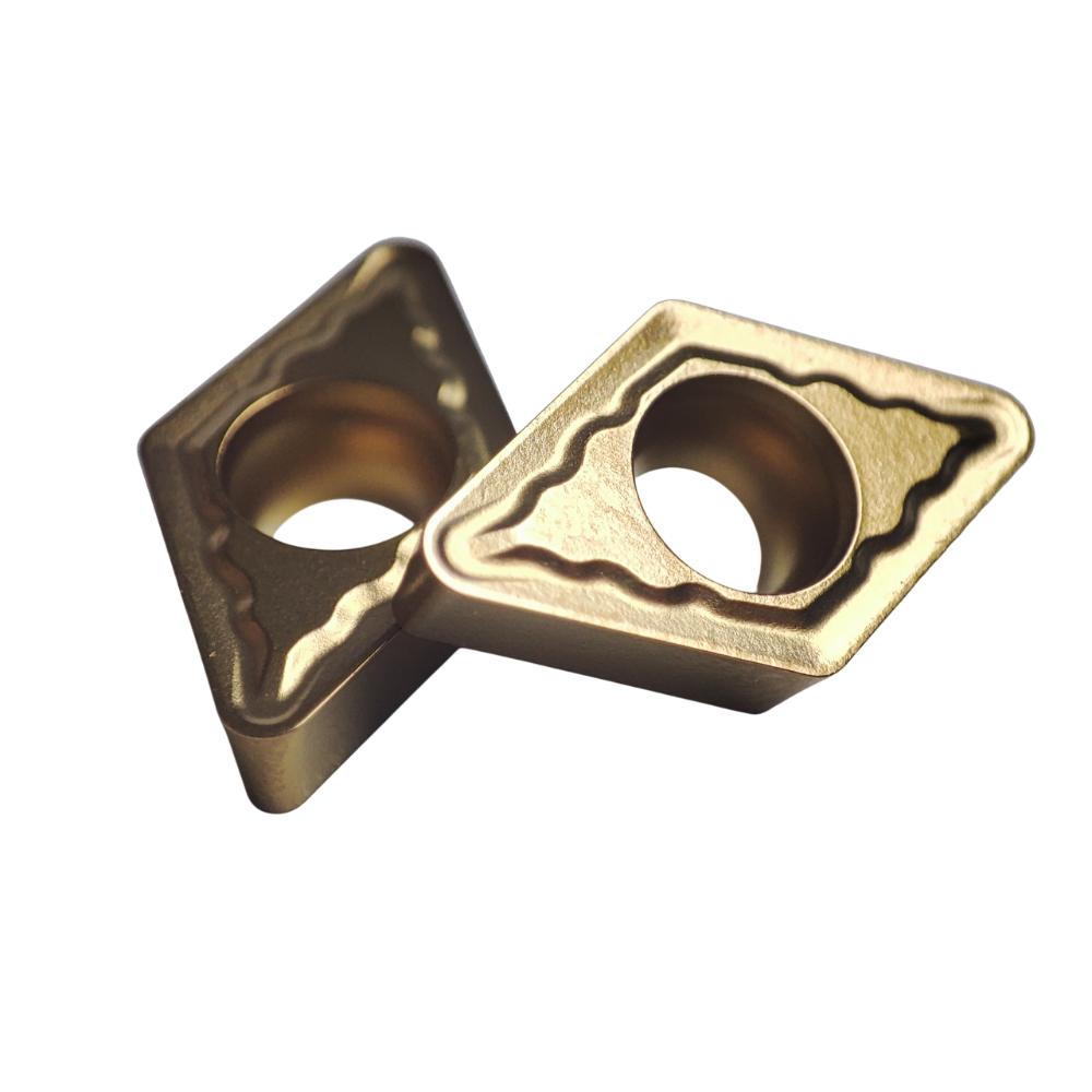 | Descripción del tipo de recubrimiento | Recubrimiento de TiCn Y TiN aplicado sobre un sustrato de metal duro de buena dureza, con buena resistencia al desgaste, resistencia superior a las adhesiones y mayor vida útil de la herramienta. Aplicaciones:adecuado para acabado a semiacabado de aceros inoxidables en condiciones de corte continuo levemente interrumpido. |