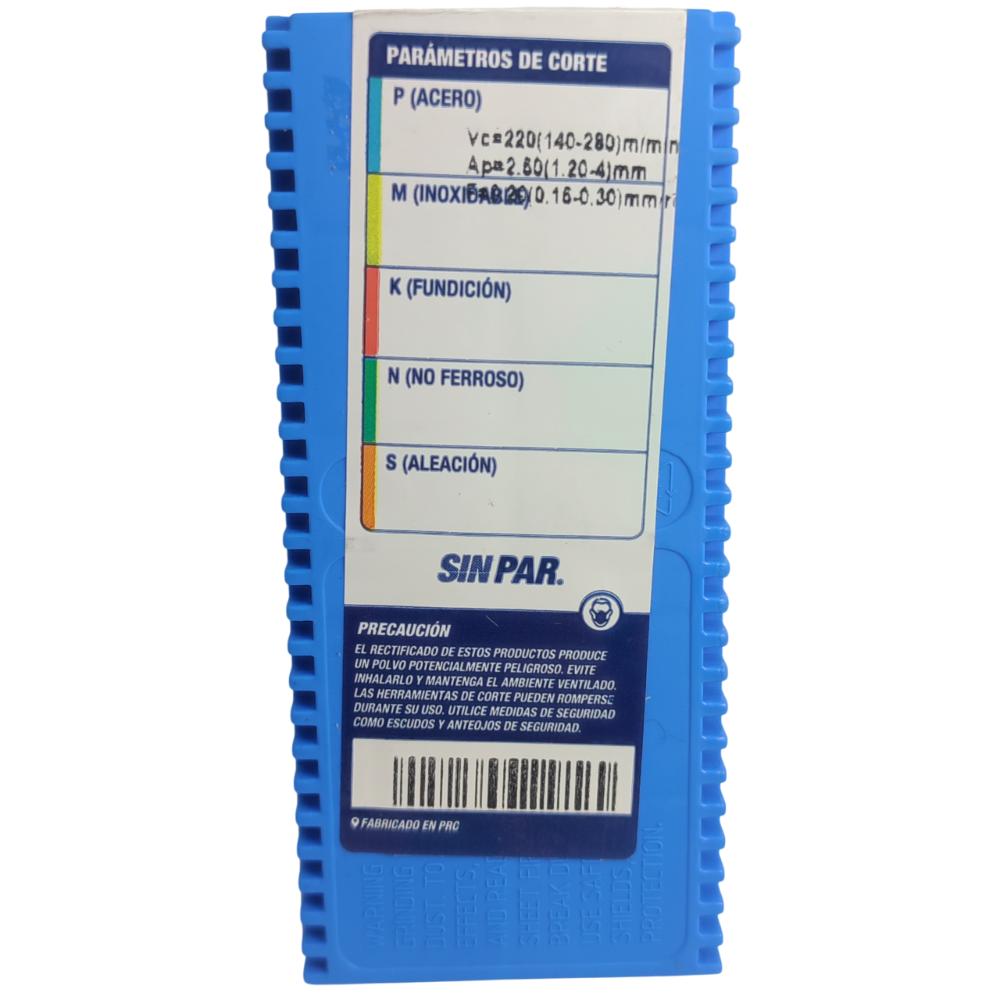 | Descripción del tipo de rompevirutas | Para semiacabado de aceros en general y aceros aleados; rompe virutas doble. Filo de corte resistente y liso. |