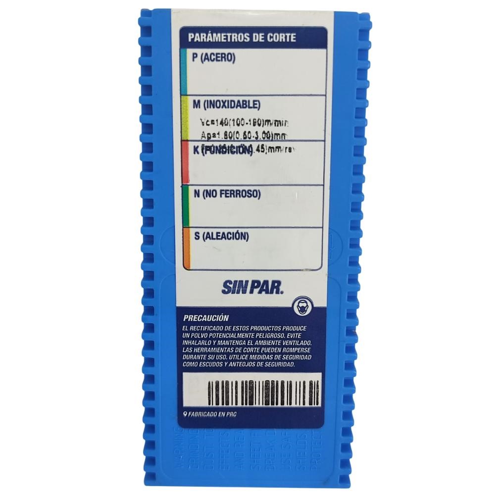 | Descripción del tipo de recubrimiento | Nuevo recubrimiento tiaIn con buena adhesión aplicado sobre sustrato de metal duro de submicrograno, con una resistencia al desgaste y al calor superior. Aplicaciones: adecuado para acabado a semiacabado de aceros inoxidables y aleaciones resitentes a altas temperaturas. |